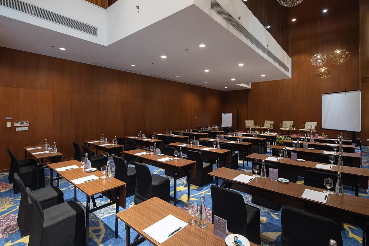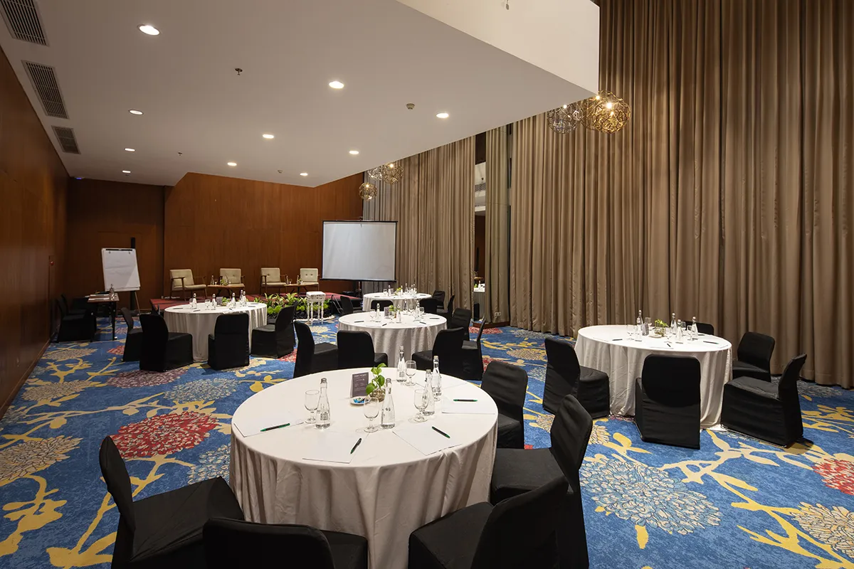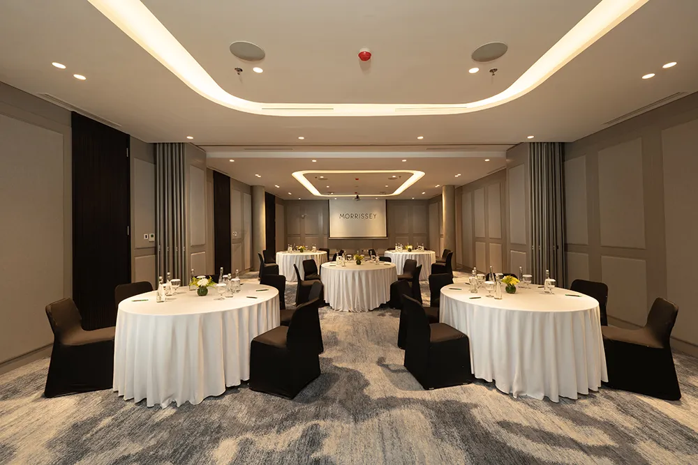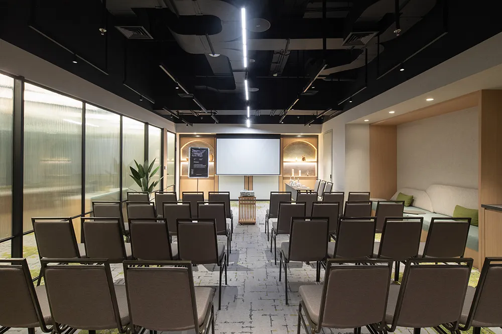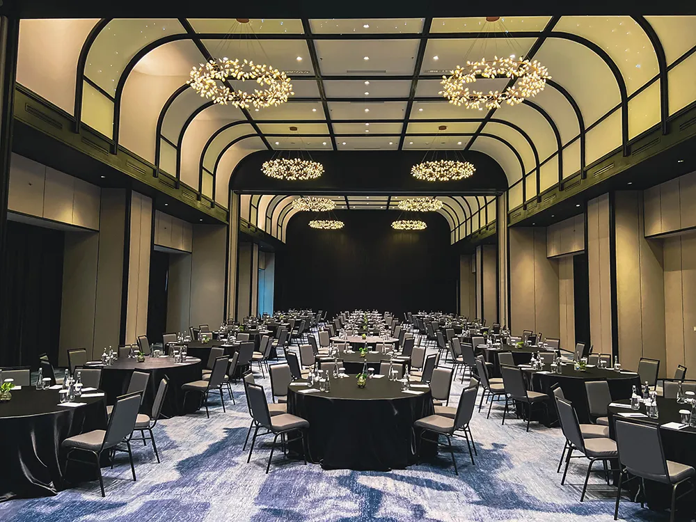 The Ballroom is meticulously designed with modern aesthetics, featuring state-of-the-art audiovisual equipment, customizable lighting, and premium furnishings to create the perfect ambiance for any event. Whether you're planning a corporate conference, a grand wedding, or an intimate social gathering, the Bond Ballroom offers the ideal setting, complemented by our dedicated event planning team to ensure every detail is flawlessly executed.